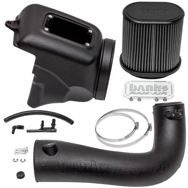 The Banks Ram-Air intake system ditches the traditional restrictive flat paper filter and baffled stock intake tube with a high flow conical element with a smooth flowing intake duct that is easy to maintain. Having the filter fully enclosed not only keeps power-robbing engine heat away, but it also prevents dirt and dust from clogging the filter prematurely, this is a Jeep after all so you're going to get dirty every once and a while. The Ram-Airs smooth tapered design maximizes airflow by eliminating restrictions, resonators, and the plastic induction muffler in the OEM intake tract. Its smooth tapered shape directs cool dry air at higher velocity into the engine. This is possible thanks to its large oval-shaped 6.5" x 4.8" opening. Cold dry air, is denser air, and air density makes power. With its oversized filter element, smooth intake track, and large 3" outlet, you can extract extra power and sound out of your Jeep, safely and reliably. Banks temperature resistant Cross-Linked Polyethylene (XLPE) air box rejects heat soak better than aluminum or the restrictive OEM design which can trap heat in pockets. Heat robs power, and the Banks Ram-Air design keeps heat out by acting as a barrier between your hot engine bay and your intake system, while simultaneously ramming more air into your engine. Available both as an oiled or dry filter variation, the Banks Big-Ass Filter offers 627 square inches of filtering surface area and flows 82% more CFM through it than stock. This large surface area also extends the duration between filter changes as smaller competitive filters will begin to clog with dirt and debris.