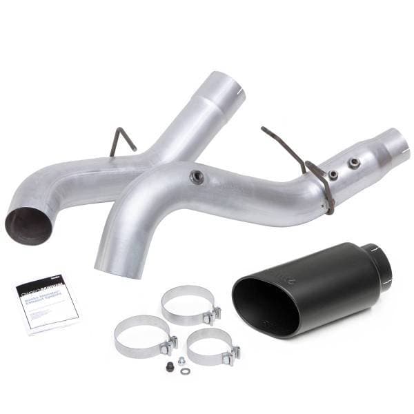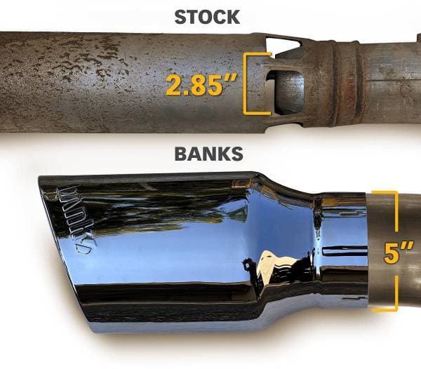 Banks Power introduces the new 5-inch Monster Exhaust designed specifically for the 2020-2021 GM 6.6L Duramax L5P 2500/3500 HD pickup trucks. The DPF-back exhaust system features constant-diameter 5-inch mandrel-bent Aluminized Steel tubing and a massive patented tip which virtually eliminates backpressure after the DPF and prevents trailer meltdown.Up The FlowWith the stock exhaust nozzle measuring 2.85-inch compared to the Monster Exhausts massive 5-inch outlet, the Banks system offers a 192% greater flow area than stock. The Monster Exhaust boasts 85% less backpressure than stock, leading to more power and increased fuel economy.Change Your LookDuramax owners can choose from two huge patented 6.5 x 7.5-inch ob-round slash-cut exhaust tips: chrome-plated polished stainless steel or high-temp matte black. And, unlike other brands, Banks's chrome-plated stainless tip will not turn brown with heat.Drop That HeatThe Monster Exhaust also provides a 15% reduction in exhaust temperature two feet behind the tip during regen! The Diesel Particulate Filter (DPF) on the Duramax L5P is cleaned through regeneration in which scorching exhaust gas temperatures can last up to 20 minutes while driving. Unlike the stock Duramax exhaust, which directs a prolonged jet-like blast of super-heated exhaust gas directly at anything being towed, the Monster Exhaust is aimed out to the side of the truck. This allows ambient air to diffuse the heated gas, eliminating the risk of melting a trailer, which has been reported by many Duramax owners.5" Aluminized Steel constant-diameter DPF-back exhaust system.15% reduction in exhaust temperature 2 feet behind the tip during regenHuge patented 6.5" x 7.5" ob-round slash-cut exhaust tipChrome-plated stainless tip will not turn brown with heat85% less backpressure than stockEmissions Compliant: E.O. Not RequiredUS Patent #5,581,111 S1