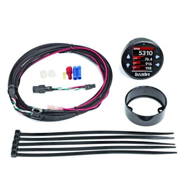 Do things other gauges can't! Groundbreaking SuperGauge now works with vehicles that do not have OBD. Display 2-8 values, including over 300 parameters available (varies Banks Sensors attached). Includes patented Density parameters (exclusive to Banks). Log up to 20 min/max values. Built-in Shift and RPM Light. Connect multiple iDash 1.8 gauges. Auto-Dimming Feature. Fits standard 52mm (2-1/16 inch) gauge mounts. Features vary by application.