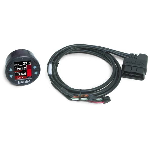 Banks iDash is the smallest, most powerful plug-n-play OBD-II monitor and control interface on the market. It now seamlessly integrates with the Banks Six-Gun/EconoMind Tuner and/or SpeedBrake. Owners of theseBanksBus I systemscan easily add or upgrade to an iDash Super Gauge or iDash DataMonster by using thesuppliedeasy-install kit. With its easy to read 2- to 8-gauge user selectable LCD display, the iDash 1.8 reads a multitude of engine parameters as well as internal data directly from the Banks tuner or SpeedBrake. It also opens a whole new world of Banks exclusive calculated parameters not available on any other device. It quickly controls the tuner power level and can be used to easily set the SpeedBrake mode and vehicle deceleration speed. Set custom low and high alerts for any engine parameter. Monitor max and min values for a user selectable list of parameters. Read and clear trouble codes on-the-fly. Customize the navigation button and LCD display colors, brightness, and even the rate at which they dim at night. Daisy chain 4 iDash gauges and view up to 32 parameters simultaneously. Add Banks sensor modules such as the 4-channel analog module, 4-channel thermocouple module, and AirMouse Ambient Air Density Module for nearly infinite vehicle and weather analysis.Daisy chain 4 iDash gauges and view up to 32 parameters simultaneously. Add Banks sensor modules such as the 4-channel analog module, 4-channel thermocouple module, and AirMouse Ambient Air Density Module for nearly infinite vehicle and weather analysis. For those who want to record their vehicle's parameters, the iDash is also available as an extremely powerful DataMonster, which adds data logging for up to 100 user selectable parameters at a rate of up to 20 samples per second. With the included microSD card, owners can log over a months' worth of continuous data. Data can be played back right on the iDash or transferred to a computer for deeper analysis.