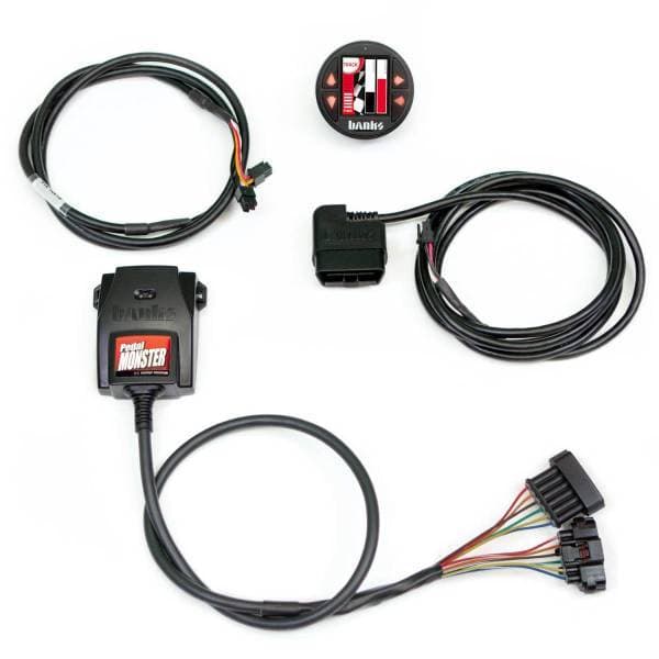 What Is It? PedalMonster is the first OBD-II connected throttle sensitivity controller for gas and diesel vehicles. Controlled via Banks iDash or mobile app, PedalMonster is the only module of its kind to offer safety features like ActiveSafety(R), Reverse Safety and Adjustable Low-Speed Trim. City, Sport, and Track modes, each with 10 sensitivity levels OBD-II connected ActiveSafety failsafe circuitry with Health Monitoring Reverse safety returns pedal to stock in reverse gear Adjustable Low-Speed Trim controls how fast sensitivity is added at slow speeds Powered by +12V via OBD, not low-overhead pedal circuit Controlled by iDash DataMonster, iDash SuperGauge, and mobile app PedalMonster stacks with any flash or inline tuner!!! Not just Banks View PedalMonster's activity in real-time via iDash and mobile app Simple plug-and-play installation Warranty friendly. Does not leave footprint after removal. Customizable gauge display Read Boost Pressure, EGT and so much more Avoid costly repairs by monitoring important sensors Display 2-8 values Read up to 80 OBDII Mode 01 values Over 300 parameters available View Data your dash does not display Displays accurate values your OEM dash gauges filter Includes patented OBDII Density (exclusive to Banks) Adds Data-Logging functionality (incl 4gb micro-SD) Log up 100 parameters at a time Log up to 20 min/max values Built-in Shift & RPM Light Connect multiple iDash gauges Auto-Dimming Feature Fits standard 52mm (2-1/16 inch) gauge mounts Features vary by application US Patent #10,933,885