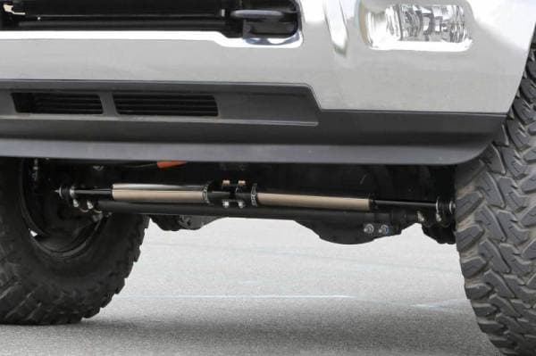 Obtain increased control of oversized tires and wheels with our Dirt Logic Stainless Steel Dual Steering Stabilizer system. This bolt on system provides the ultimate damping for the stock steering system of the vehicle to reduce tire shake caused by large tires both on and offroad.