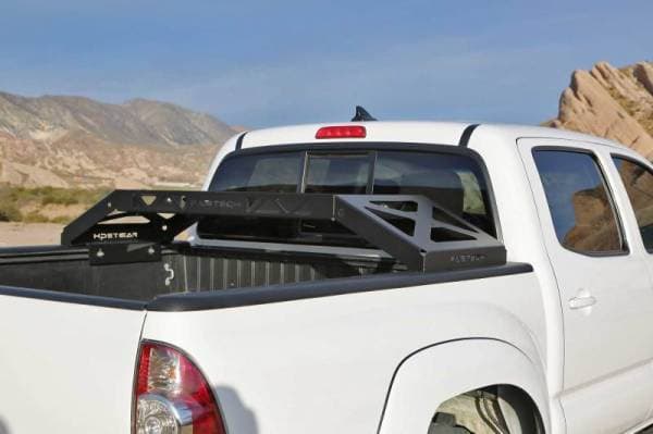 2015-19 Toyota Tacoma 2WD/4WD. Fabtech's Toyota Tacoma Cargo Bed Rack is a heavy duty, mid height rack designed to hold additional cargo with optional mounts for trail tools and bicycles. Unlike the typical construction contractor looking bed racks that can make the vehicle feel top heavy when driving, the Fabtech rack keeps things low and compact. The rugged three piece design clamps to the bed deck rail system for a quick and easy installation. No holes to drill. This multi-function Tacoma bed rack is great for additional cargo storage above the bed rail leaving the entire bed floor open. Predrilled holes in the bed rack allow the installation of the optional Fabtech accessory mounts. Quality bolt on mounts allow for a Hi-Lift Jack, Shovel, two RotopaX, two Bicycles and two Tread Boards to be mounted. If you opt for no accessory mounts, the rack can be installed with the predrilled holes against the back of the cab so there are no unsightly empty holes showing. Clean and sleek. There are many Toyota Tacoma bed racks on the market but none have the versatility, strength and style like the Fabtech bed rack. Three piece steel construction for maximum strength. Supports up to 150lbs of cargo. No drill installation. Load area dimension - 20" x 37". Bed Floor to bottom of rack - 24".