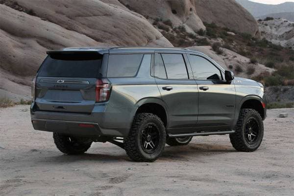 This high quality suspension has been designed to upgrade GM 1500 SUV's with standard suspension for increased strength and a balanced compliant ride for both on and offroad. The front suspension receives Fabtech's heavy duty Uniball Upper Control Arms and Dirt Logic 2.5 Coilover shocks. The Fabtech arms are vastly superior to the stock arms providing strength and longevity to the vehicle. They are constructed of 1.25" OD, .120" wall chromoly tubing with 1" FK Stainless PTFE lined Uniballs that attach to the factory GM steering knuckle without drilling. The replacement UCA's have been designed to work in conjunction with Fabtech's Stainless Steel Dirt Logic 2.5 Coilover shocks for a complete front suspension system upgrade. The Dirt Logic 2.5 Coilovers feature cold wound coil springs for a smooth ride with the ability to tackle aggressive offroad terrain. The rear receives extended length upper link arms to allow for increased travel without bind. The geometry of these links provides the proper alignment to the rear independent suspension with the new ride height. As with the front, the rear also receives stainless steel Dirt Logic 2.5 Coilover shocks for a superior ride quality. This 3" lift kit system is perfect for those that want increased suspension performance with a low lift height. A great choice for daily drivers that overland and hit the trails on weekends.