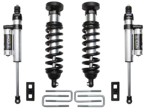 ICON Vehicle Dynamics Toyota Tundra Stage 3 suspension systems are designed with maximum performance and the serious driver in mind. ICON engineers’ primary focus is to increase wheel travel and damping ability, which translates into outstanding vehicle control and ride quality both on and off-road. The Stage 3 system includes vehicle-specific tuned 2.5†coilover shocks featuring an internal reservoir for exceptional cooling properties. These coilovers are also height adjustable from 0-2.5†of lift allowing the use of larger, more aggressive wheel and tire combinations. ICON 2.5 VS Piggyback Series rear shocks utilize a vehicle-specific valving that balances the performance of the truck from front to rear. The ICON Vehicle Dynamics 2000 - 2006 Toyota Tundra Stage 3 suspension system is an excellent choice for those drivers looking to enhance the capabilities of their pickup on the road as well as in the dirt.