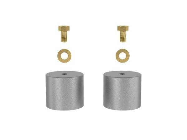 The ICON 2" bump stop spacer kit drops OE rear bump stops of Ford F-250/F-350 by 2†to limit up travel for fitment of certain suspension components, or ensuring clearance of larger tires when the suspension is fully compressed. The CNC aluminum spacers are also useful to ensure proper bump location when deleting OE rear leaf spring blocks when installing new rear leaf springs or if a shorter than OE block without a bump stop tang is desired.