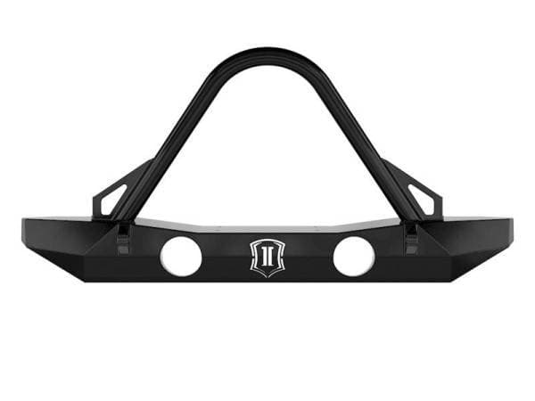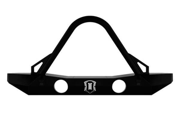 Tackle the toughest trails with the PRO Series Mid-Width Front Bumper from ICON! Designed for the ultimate in off-road form and function, PRO Series features a multi-faceted, high-clearance design for maximum clearance around trail obstacles. The Mid-Width PRO Series bumper provides increased protection for the Jeep's lower grille corners while maintaining ample clearance for up to 37" tires to fully articulate and access steep obstacles. The integrated top mount places the winch up out of the water, mud and rocks, and allows easy access to the rope drum. The rock crawler style tubular stinger extends up and out from the bumper to help prevent a forward flop if you come down hard off of a steep ledge. The stinger is made of heavy wall DOM tubing and fortified with laser cut steel plate gussets. If you manage to get yourself into a tight spot, recovery is aided by a pair of extreme duty recovery shackle tabs, CNC machined from beefy 1" thick plate steel. And like the rest of the PRO Series bumper, even the recovery tabs are angled for maximum clearance. Recessed light mounts protect either the Jeep's stock fog lamps or your favorite aftermarket LED lights. The bumper is fabricated from CNC laser cut, precision brake-formed 3/16" plate steel and the Impact Bar is made of 1-3/4" DOM tubing, with plate steel gussets. The bumper looks as great as it performs, with a durable, multi-stage satin black powder coat finish. Wheel with confidence knowing that ICON Impact products are covered by ICON's Limited Lifetime Warranty.