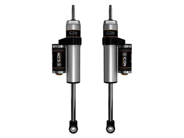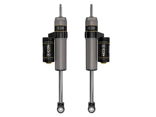 ICON Vehicle Specific (V.S.) 2.5 Series shocks are designed and built to give your vehicle outstanding performance off-road and a smooth ride on the street. These shocks are configured specifically for each application in both length and damping tune. Like all ICON'S Shock Absorbers, V.S. 2.5 Series shocks are 100% rebuildable and 100% revalveable. For piggyback and specific remote reservoir applications, ICON's unique use of a 6061 billet aluminum manifold a few inches below the top cap of the shock creates an internal Bump Zone that when used creates an additional 20% of damping force. This additional force helps prevent harsh bottom outs and controls the suspension when compressing at high velocity. If you are looking for a more user defined tune, consider looking into the Compression Damping Control Valve (CDCV) or the Omega Series bypass shocks.