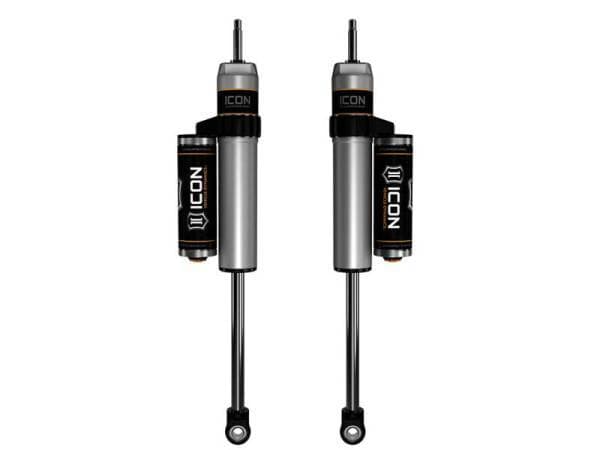 ICON Vehicle Specific (V.S.) 2.5 Series shocks are designed and built to give your vehicle outstanding performance off-road and a smooth ride on the street. These shocks are configured specifically for each application in both length and damping tune. Like all ICON'S Shock Absorbers, V.S. 2.5 Series shocks are 100% rebuildable and 100% revalveable. For piggyback and specific remote reservoir applications, ICON'S unique use of a 6061 billet aluminum manifold a few inches below the top cap of the shock creates an internal Bump Zone that when used creates an additional 20% of damping force. This additional force helps prevent harsh bottom outs and controls the suspension when compressing at high velocity.