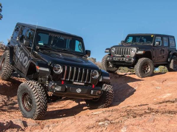 The ICON Vehicle Dynamics Stage 2 2.5" Suspension System for the 2018-UP Jeep Wrangler JL is designed for the driver looking to drastically improve the performance and ride quality of their vehicle. This Stage 2 system includes 2.5" lift dual rate coil springs, Vehicle Specific 2.0 Aluminum Series shocks, tubular steel front lower links, bump stop spacers, sway bar links, and all necessary hardware to complete the installation. With this combination of components, ICON was able to increase wheel travel numbers by over 30% (3" front, 2" rear), redefining the potential of the 2018-UP JL. The front lower links included with this system are constructed from thick wall steel tubing, provide increased castor numbers, and feature dual durometer bushings for noise free operation, maximum articulation, and minimal bind. The Stage 2 system allows for fitment of 35" tires when used with ICON's recommended wheel specifications. For users looking to install 37" tires, an optional bump stop spacer kit (PN: 22029) is available.