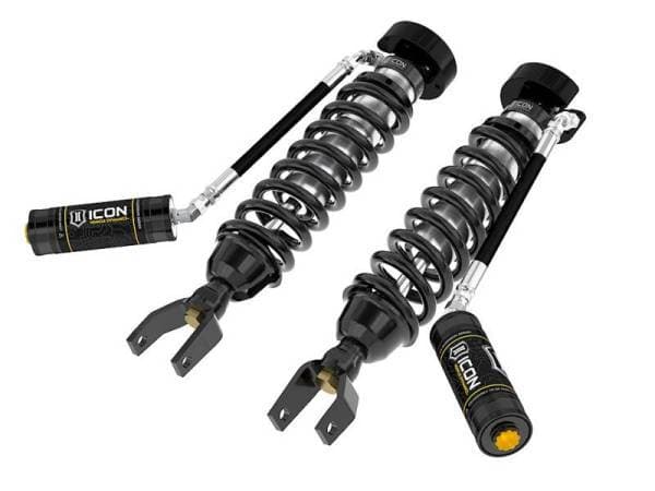 ICON Vehicle Dynamics V.S. 2.5 Series coilover shocks are an incredible upgrade for the front end of 2019-UP Ram 1500 trucks. ICON’s Vehicle-specific valving provides a sport tuned feel on and off-road while 2-3†of lift height adjustability allows the use of larger, more aggressive wheel and tire combinations. The larger 2.5†shock body and increased piston area over stock components and application specific length to maximize wheel travel provide improved damping ability and outstanding ride characteristics across varying types of terrain. These remote reservoir coilovers will maintain lower operating temperatures and offer more consistent operation during extended or aggressive off-road use compared to internal reservoir versions. When paired with ICON 2.0 Aluminum Series or 2.5 Aluminum Series rear shocks vehicle control will be balanced front to rear, resulting in the best overall driving experience for your Ram 1500 truck.