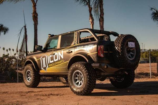 ICON’s billet aluminum rear upper link arms for the 2020-UP Ford Bronco are a significant upgrade over the factory units due to increases in strength, adjustability, and performance. These links are made from CNC machined 6061 aluminum in-house and anodized for corrosion resistance, providing a major improvement over the construction of the stock units. This rear lower link arm kit features PTFE-lined FK rod ends for increased suspension articulation, reduced deflection, and on-vehicle link arm length adjustability using ICON’s double adjuster system. Additionally, multi durometer bushings are installed that allow for noise free operation and maximum angularity without the need for periodic greasing and/or other maintenance. The quality rod ends and bushings featured in these link arms allow the vehicle’s suspension to function as intended, without the bushing bind that limits the vehicle in stock form. After the design phase was completed ICON engineers put these parts through the “ICON1K†real-world test cycle for a final stamp of approval.