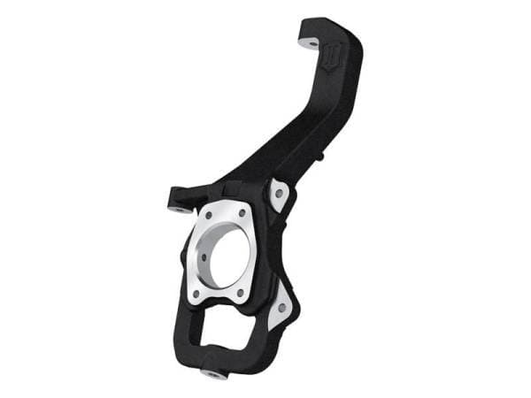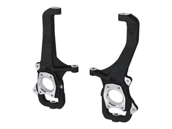 The ICON Vehicle Dynamics Front Steering Knuckle Kit is an essential component of the ICON 6†Lift Performance Suspension System for the 2022-2023 Toyota Tundra and feature a 4†drop to compliment the ICON high-clearance front crossmembers. Their single piece, high-strength CNC machined ductile iron construction ensures strength and have been engineered to withstand the stresses of aggressive off-road use while minimizing un-sprung weight and maintaining factory track width. Optimized steering arm geometry also virtually eliminates bump steer through the entire wheel travel range for predictable handling characteristics. These steering knuckles will stand the test of time with replaceable steering stops, a durable black powder coat finish, and ICON’s Limited Lifetime Warranty.