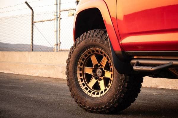 Staying true to the ICON Alloys approach, the 17†Raider has been engineered to maximize caliper clearance and optimize wheel position for un-hindered suspension travel and steering function. Backspace and wheel offset dimensions have been strategically developed to reduce scrub radius, improving all-around handling and ride quality. The ICON Alloys Raider has also been strength tested to yield a 2,750lb load rating - making it one of the strongest wheel options on the market. With build features such as these, it's clear that a set of ICON Alloys Raider wheels is the perfect complement to an ICON Vehicle Dynamics suspension system.