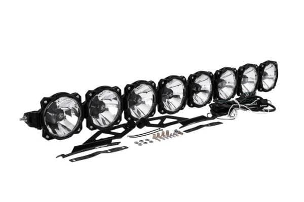 FEATURES-Powered by Gravity LED G6 optical inserts efficient, powerful, patented -Patent-pending Infinity Ring system enables the conversion of the Pro6 from straight to radius configurations in seconds (Patent-pending Application 14/704,736)-Signature KC modular design is expandable to different widths-High output, low amperage draw-G6 LED Optics available in Spot, Driving, Wide-40 Beam PatternsLIGHT PERFORMANCE-Raw Lumens: 18,400 lm-Lux @ 10 Meters: 6,700 lx-Candela: 670,000 cd-Beam Distance (Meters): 1,637mSPECIFICATIONS-Wattage: 160W-Amp Draw: 13.04A-Voltage: 9-32V-Dimensions: H - 6.06" x D - 3.33" x W - 51.625"PARTS INCLUDED-(1) Pro6 8-Light 50" LED Light Bar-(8) Light Covers - Black with Yellow KC Logo-Mount Brackets and Hardware for 2005-2018 Toyota Tacoma-Deluxe Plug-N-Play Wiring Harness with 30 amp LED SwitchPERFORMANCE Gravity LED OPTICSPatented Gravity LED G6 optical inserts provide exceptional efficiency and light output. 20W, G6 optics are available in Spot, Driving and Wide-40 patterns.Infinity Ring SYSTEMThe Infinity Ring system is a race-proven, adjustable linking system featuring expandable widths, modular beam shape available in a radius or straight setting between each ring.EASY INSTALLATION ON TOYOTA TACOMAThis Pro6 LED Light Bar system comes with specifically designed Toyota Tacoma overhead roof brackets and all necessary hardware for easy mounting on OE Toyota Tacoma trucks.RACE PROVEN STRENGTH & DURABILITYInspired by endurance racing, tested by KC athletes, the Pro6 shatters all performance benchmarks, while providing the most durable and scalable light bar design available today.