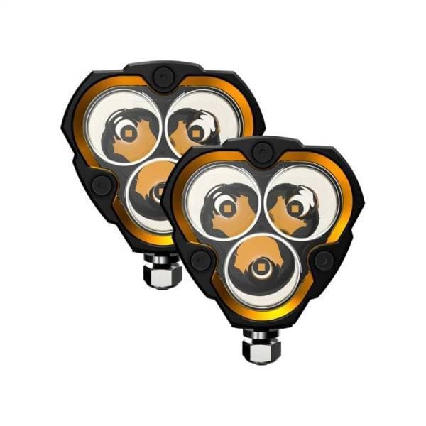 The small and mighty KC FLEX ERA 3 features an optimized compact triangular design with best in class light output. Designed for flexibility, you can change beam patterns and style easily with swappable lens optics, bezels, and covers. Ushering in a new ERA in off-road lighting, the FLEX ERA 3 was born to race Baja and is a perfect complement on your next adventure. Signature triangular design provides maximum output with 3 high powered LEDs in a compact space, as compact as 2 LEDs and stronger than 4 in the same space. Changing the game, KC reinvents the traditional with an allnew form factor featuring amber backlighting. IP68 water and dust protection with a redesigned industryleading multislide Die-Cast construction. With interchangeable lens optics, bezel colors, and covers, the flexibility abounds with this new series of lights. High powered lights with precision designed optics make for a highly focused spot pattern light.