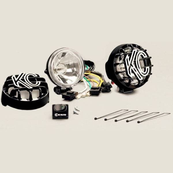 FEATURES-2 x 55W Halogen Bulbs -Black Steel Housing -Precision Reflector Optics -Clear Tempered Glass Lens -Spread Beam Pattern LIGHT PERFORMANCE(PER LIGHT)-RAW Lumens: 1,350 lm -LUX @ 10 meters: 392 lx -Candela: 39,240 cd -Beam Distance (Meters): 396mSPECIFICATIONS-Wattage: 55W per light -Amp Draw: 4.58A -Voltage: 9V-32V -IP Rating: IP68 -Product Dimensions: W - 4.142" x H - 4.409" x D - 2.602" Parts Included in Pair Pack system-(2) 55W 4" Rally 400 Halogen Lights -Deluxe Wiring Harness with 2-Pin weather proof connectors -(2) 4" ABS Protective Stone Guards -30 Amp Illuminated Switch w/ Switch PanelPERFORMANCE HALOGEN AND PRECISION OPTICS 4" Rally 400s deliver 392 lx @ 10m of light output with a beam distance of 396 meters. Powered by 55W H3 Halogen bulbs and KC's precision designed reflectors, providing extreme light output at high speeds and long distances. AVAILABLE BEAM PATTERN AND ADVANTAGES Spread Beam- Provides a balanced wider beam of light that increases peripheral visibility, as well improved forward facing light for an increased range of visibility. ADJUSTABLE MOUNTING FOR ACCURACY AND PRECISION Two Axis mounts allow users to easily adjust and aim the Rally 400s, for consistent and precise beam output. COMPACT SIZE AND VERSATILITY Rally 400s feature a compact 4" profile with a rugged steel housing makes these lights idea for front bumpers on trucks, Jeeps and SUVs, especially on vehicle locations with limited space.