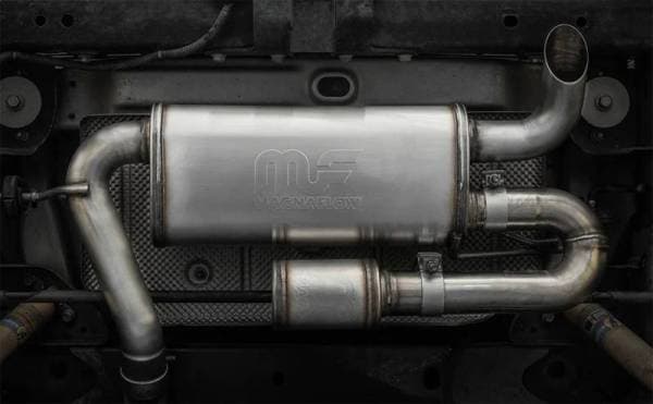 The MagnaFlow Jeep Wrangler JK Overland Series Axle-Back Performance Exhaust System #19668 is engineered for off-road function and built to explore further. This Jeep Wrangler exhaust system is designed for the 2007-2018 Jeep Wrangler equipped with the V6 3.6L or 3.8L engine option. The high clearance exhaust design of this kit is designed to keep clear of any challenging terrain or obstacles you may come across. #19668 2.5 in. diameter mandrel bent main piping passes through an 18 in. straight-through oval muffler and No Drone Technology (NDT) tuned chamber before exiting in a high-clearance tucked tailpipe to the rear of the passenger side. MagnaFlow NDT utilizes passive quarter-wave noise cancellation to minimize the unwanted droning noises that can otherwise occur at highway cruising speeds. The entire Jeep exhaust kit can be tailored to your preferred exhaust tone by changing out which module is attached to the integrated muffler's accessory port. The included pipe cap, J-pipe and NDT modules can be combined in various ways to mitigate a wide range of droning frequencies, so which exhaust sound profile you choose to go with is up to your driving style. Looking to minimize overall drone? Simply connect the NDT module. Prefer a more traditional rendition of that famous MagnaFlow exhaust tone? All you need to do is cover the accessory port with the included pipe cap. Exhaust kit #19668 utilizes a direct-fit, easy to install design that replaces your OEM exhaust system from near the rear axle on back. This Jeep Wrangler JK axle-back performance exhaust system is made of durable, corrosion resistant stainless steel and produced using advanced CNC precision robotic manufacturing techniques, all backed by MagnaFlow's limited lifetime warranty.