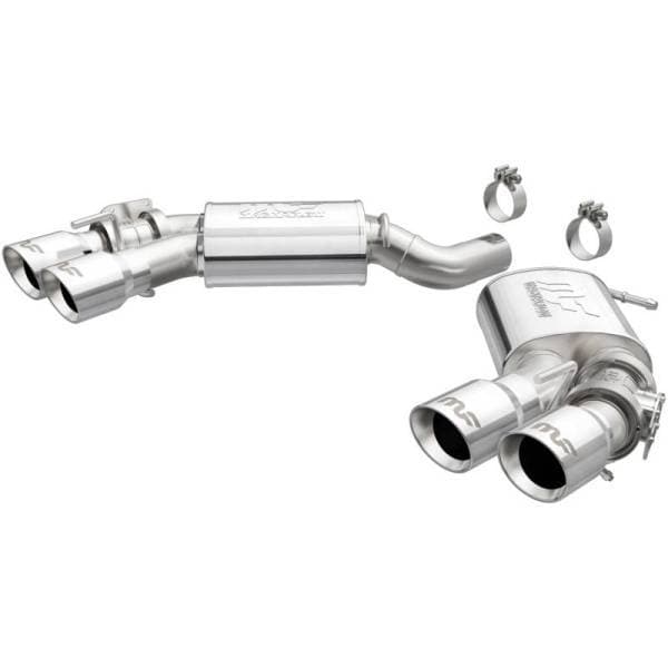 The MagnaFlow Chevrolet Camaro Competition Series 19336 brings an aggressive, attention-grabbing edge to the deep resonant exhaust note we’re so well known for. This exhaust kit is designed to enhance your 6.2L 2016-2022 Chevrolet Camaro with dyno-proven performance made possible thanks to fast-flowing mandrel bent 3in. main piping and 2 Straight-Through mufflers ending in a Quad Split Rear exit with 4in. Polished Welded-On-Double Wall-Angle Cut-Folded Edge tips featuring a sporty finish. The exhaust system’s axle-back layout replaces your ride’s exhaust system from near the rear axle on back. Exhaust system 19336 is engineered to make your vehicle’s engine produce Agressive exterior and Moderate interior sound levels, befitting its competition-oriented design. 19336’s direct-fit design makes installation a breeze thanks to the use of advanced 3D scanning techniques. This performance exhaust system is made of 100% durable and corrosion-resistant stainless steel and produced using CNC precision robotic manufacturing, all backed by MagnaFlow’s limited lifetime warranty. Please check to ensure compliance with local noise regulations.