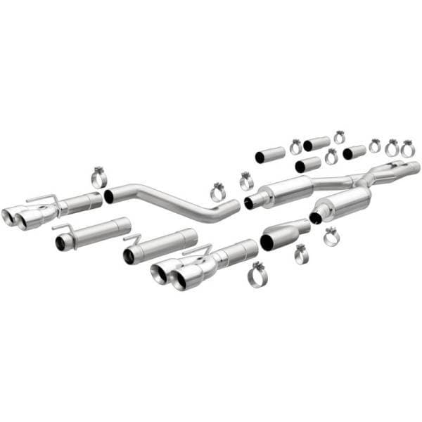 The MagnaFlow Dodge Challenger Competition Series 19367 brings an aggressive, attention-grabbing edge to the deep resonant exhaust note we’re so well known for. This exhaust kit is designed to enhance your 5.7L, 6.2L, 6.4L 2015-2022 Dodge Challenger with dyno-proven performance made possible thanks to fast-flowing mandrel bent 3in. main piping and 2 Straight-Through mufflers ending in a Quad Split Rear exit with 3.5in. Polished Welded-Double Wall-Angle Cut-Folded Edge tips featuring a sporty finish. The exhaust system’s cat-back layout replaces your ride’s exhaust system from near the catalytic converter on back. Exhaust system 19367 is engineered to make your vehicle’s engine produce Agressive exterior and Moderate interior sound levels, befitting its competition-oriented design. 19367’s direct-fit design makes installation a breeze thanks to the use of advanced 3D scanning techniques. This performance exhaust system is made of 100% durable and corrosion-resistant stainless steel and produced using CNC precision robotic manufacturing, all backed by MagnaFlow’s limited lifetime warranty. Please check to ensure compliance with local noise regulations.
