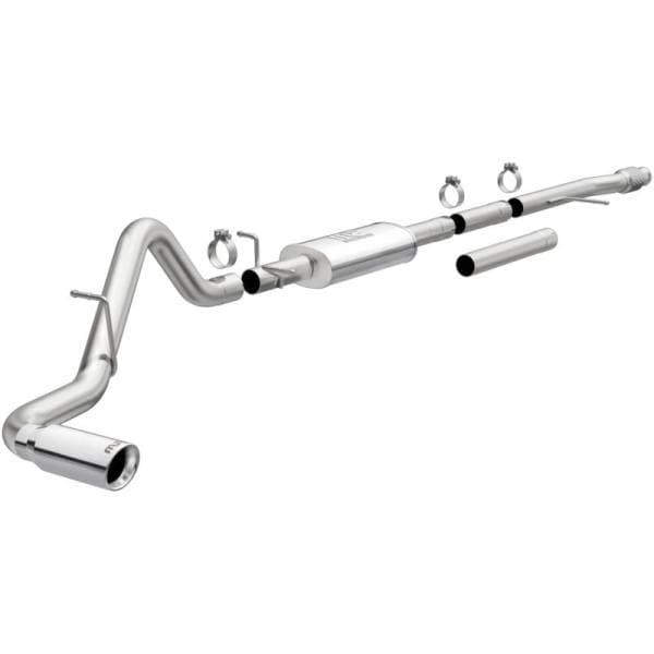 The MagnaFlow Street Series 19469 brings out the personality of your Truck with our signature resonant, powerful engine tone and dyno-proven performance. Thanks to its fast-flowing, mandrel bent 3in. main piping and 1 Straight-Through mufflers ending in a Single Passenger Side Rear exit with 4in. Polished Welded-On-Double Wall-Angle Cut-Rolled Edge tips, this Truck exhaust kit has the performance chops to match its sporty sound and appearance. Upgrade your ride to the next level with an exhaust that has the pipes to put other Truck’s to shame. With this system your vehicle will be producing Moderate exterior and Mild interior sound levels while leaving other cars and trucks feeling envious at every stoplight. Exhaust kit 19469 features a cat-back layout that replaces your ride’s stock exhaust components from near the catalytic converter on back. Extensive 3D scanning during development has resulted in a direct-fit design that you can easily install yourself. 19469 is produced using CNC precision robotic manufacturing techniques and is backed by MagnaFlow’s 1-year limited finish warranty and limited lifetime construction warranty.