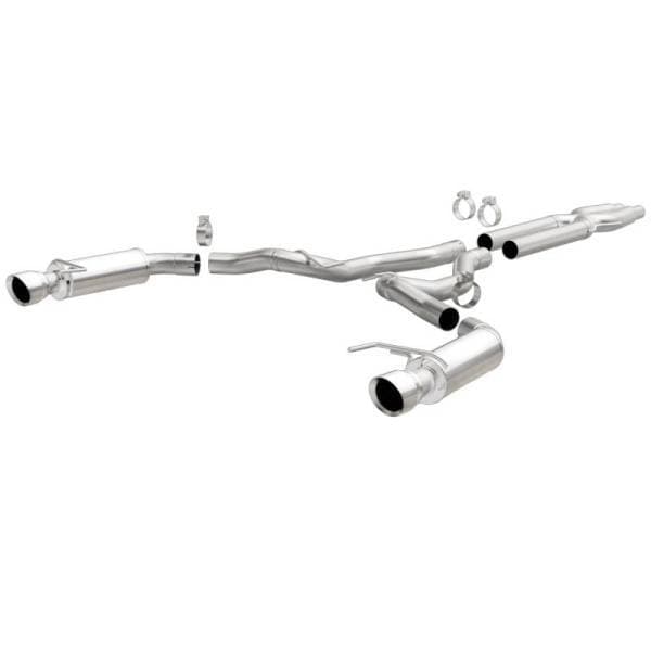 The MagnaFlow Ford Mustang Competition Series 19101 brings an aggressive, attention-grabbing edge to the deep resonant exhaust note we’re so well known for. This exhaust kit is designed to enhance your 5.0L 2015-2017 Ford Mustang with dyno-proven performance made possible thanks to fast-flowing mandrel bent 3in. main piping and 2 Straight-Through mufflers ending in a Dual Split Rear exit with 4.5in. Polished Welded-Double Wall-Angle Cut-Folded Edge tips featuring a sporty finish. The exhaust system’s cat-back layout replaces your ride’s exhaust system from near the catalytic converter on back. Exhaust system 19101 is engineered to make your vehicle’s engine produce Agressive exterior and Moderate interior sound levels, befitting its competition-oriented design. 19101’s direct-fit design makes installation a breeze thanks to the use of advanced 3D scanning techniques. This performance exhaust system is made of 100% durable and corrosion-resistant stainless steel and produced using CNC precision robotic manufacturing, all backed by MagnaFlow’s limited lifetime warranty. Please check to ensure compliance with local noise regulations.
