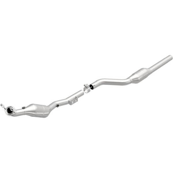 Keep the check engine light off with MagnaFlow OEM Grade Federal/EPA Compliant Direct-Fit Catalytic Converter 51687. With features including free-flowing mandrel-bent tubing and highly corrosion resistant stainless steel construction, easily install this spun body converter yourself using the proper tools, no cutting or welding required. MagnaFlow's state-of-the-art metrology department uses the latest 3D scanning systems during research and development, so you can be confident that your new part will fit and function like the original equipment. By replicating the OE spun body design, the single laser fusion weld greatly reduces the possibility of a leak, and our compact, low-mass design also allows for greater thermal efficiency.This direct-fit catalytic converter is designed specifically for the 2001-2002 Mercedes-Benz E430 and interchanges with OE part 210 490 83 20 80. Hardware is included to eliminate the hassle of working with corroded factory parts. This replacement part is designed to meet or exceed Federal emissions requirements set forth by the EPA, complying with legal standards for OBDII Federally registered vehicles with California or Federal/EPA Emission systems.