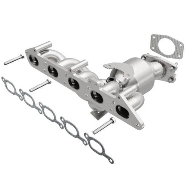 Keep the check engine light off with MagnaFlow HM Grade Federal/EPA Compliant Direct-Fit Catalytic Converter 24425. With features including free-flowing mandrel-bent tubing and highly corrosion resistant, stainless steel construction, easily install this spun body converter yourself using the proper tools, no cutting or welding required. MagnaFlow's state-of-the-art metrology department uses the latest 3D scanning systems during research and development, so you can be confident that your new part will fit and function like the original equipment. By replicating the OE spun body design, the single laser fusion weld greatly reduces the possibility of a leak, and our compact, low-mass design also allows for greater thermal efficiency.This direct-fit catalytic converter is designed to fit the 2001-2005 Volvo S60 and 2001-2005 Volvo V70. The included gaskets & hardware reduce the possibility of a leaking seal while avoiding the need to reuse corroded factory parts for installation. This replacement part is designed to meet or exceed Federal emissions requirements set forth by the EPA, complying with legal standards for OBDII Federally registered vehicles with Federal/EPA Emission systems.
