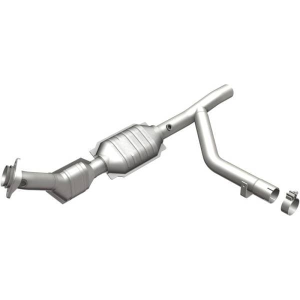 MagnaFlow OEM Grade Federal/EPA Compliant Direct-Fit Catalytic Converter 51544 helps keep the check engine light off. DIY installation is easy with the proper tools (no cutting or welding required). With features including mandrel-bent tubing to eliminate flow restrictions and stainless steel construction to resist corrosion, you can have confidence in the quality of this catalytic converter. Using state-of-the-art 3D scanning systems in the design process, the MagnaFlow metrology department ensures this new part to fit and function like the original equipment.This direct-fit catalytic converter is designed to fit the 2001-2003 Ford F-150 and 2001-2002 Lincoln Navigator. Hardware is included to eliminate the hassle of working with corroded factory parts. This replacement part is designed to meet or exceed Federal emissions requirements set forth by the EPA, complying with legal standards for OBDII Federally registered vehicles with California or Federal/EPA Emission systems.