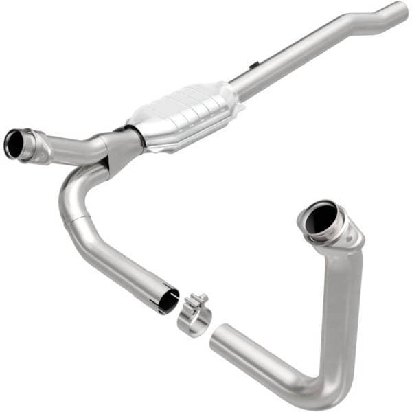 MagnaFlow OEM Grade Federal/EPA Compliant Direct-Fit Catalytic Converter 49661 helps keep the check engine light off. DIY installation is easy with the proper tools (no cutting or welding required). With features including mandrel-bent tubing to eliminate flow restrictions and stainless steel construction to resist corrosion, you can have confidence in the quality of this catalytic converter. Using state-of-the-art 3D scanning systems in the design process, the MagnaFlow metrology department ensures this new part to fit and function like the original equipment.This direct-fit catalytic converter is designed specifically for the 2002-2003 Dodge Ram 1500. Hardware is included to eliminate the hassle of working with corroded factory parts. This replacement part is designed to meet or exceed Federal emissions requirements set forth by the EPA, complying with legal standards for OBDII Federally registered vehicles with California or Federal/EPA Emission systems.