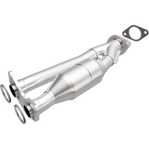 Keep the check engine light off with MagnaFlow OEM Grade Federal/EPA Compliant Direct-Fit Catalytic Converter 51975. With features including free-flowing mandrel-bent tubing and highly corrosion resistant stainless steel construction, easily install this spun body converter yourself using the proper tools, no cutting or welding required. MagnaFlow's state-of-the-art metrology department uses the latest 3D scanning systems during research and development, so you can be confident that your new part will fit and function like the original equipment. By replicating the OE spun body design, the single laser fusion weld greatly reduces the possibility of a leak, and our compact, low-mass design also allows for greater thermal efficiency.This direct-fit catalytic converter is designed specifically for the 2003-2005 Mazda 6 and interchanges with OE parts AJ59-20-60XF and AJB4-20-60XA. Avoid potential exhaust leaks by using the included gaskets to get a proper seal. This replacement part is designed to meet or exceed Federal emissions requirements set forth by the EPA, complying with legal standards for OBDII Federally registered vehicles with California or Federal/EPA Emission systems.