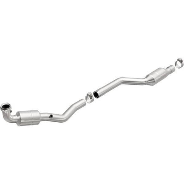 Keep the check engine light off with MagnaFlow OEM Grade Federal/EPA Compliant Direct-Fit Catalytic Converter 51419. With features including free-flowing mandrel-bent tubing and highly corrosion resistant stainless steel construction, easily install this spun body converter yourself using the proper tools, no cutting or welding required. MagnaFlow's state-of-the-art metrology department uses the latest 3D scanning systems during research and development, so you can be confident that your new part will fit and function like the original equipment. By replicating the OE spun body design, the single laser fusion weld greatly reduces the possibility of a leak, and our compact, low-mass design also allows for greater thermal efficiency.This direct-fit catalytic converter is designed specifically for the 2003-2006 Mercedes-Benz SL500 and interchanges with OE part 230 490 37 19 80. Hardware is included to eliminate the hassle of working with corroded factory parts. This replacement part is designed to meet or exceed Federal emissions requirements set forth by the EPA, complying with legal standards for OBDII Federally registered vehicles with California or Federal/EPA Emission systems.