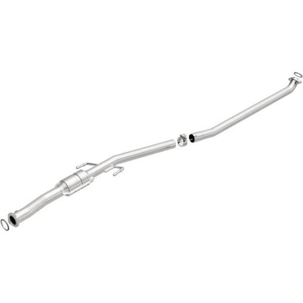Keep the check engine light off with MagnaFlow OEM Grade Federal/EPA Compliant Direct-Fit Catalytic Converter 49020. With features including free-flowing mandrel-bent tubing and highly corrosion resistant stainless steel construction, easily install this spun body converter yourself using the proper tools, no cutting or welding required. MagnaFlow's state-of-the-art metrology department uses the latest 3D scanning systems during research and development, so you can be confident that your new part will fit and function like the original equipment. By replicating the OE spun body design, the single laser fusion weld greatly reduces the possibility of a leak, and our compact, low-mass design also allows for greater thermal efficiency.This direct-fit catalytic converter is designed specifically for the 2004-2005 Toyota RAV4 and interchanges with OE parts 17420-28380 and 17420-28570. The included gaskets & hardware reduce the possibility of a leaking seal while avoiding the need to reuse corroded factory parts for installation. This replacement part is designed to meet or exceed Federal emissions requirements set forth by the EPA, complying with legal standards for OBDII Federally registered vehicles with California or Federal/EPA Emission systems.