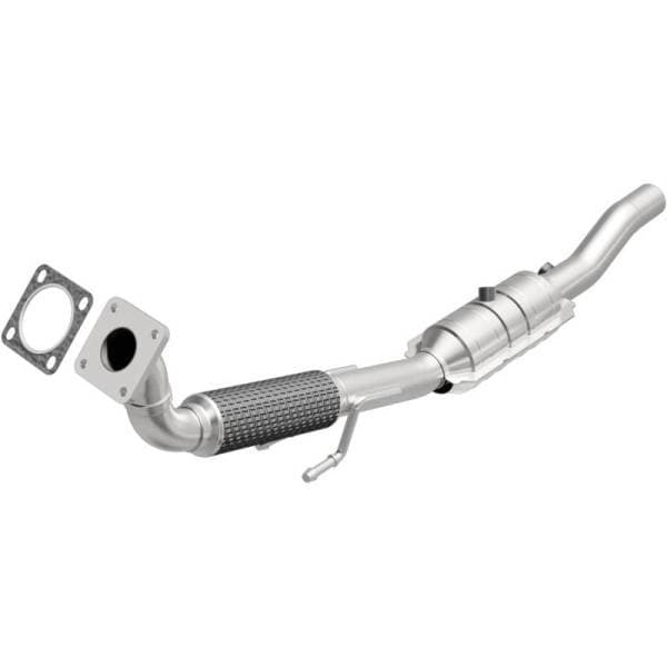 Keep the check engine light off with MagnaFlow OEM Grade Federal/EPA Compliant Direct-Fit Catalytic Converter 51464. With features including free-flowing mandrel-bent tubing and highly corrosion resistant stainless steel construction, easily install this spun body converter yourself using the proper tools, no cutting or welding required. MagnaFlow's state-of-the-art metrology department uses the latest 3D scanning systems during research and development, so you can be confident that your new part will fit and function like the original equipment. By replicating the OE spun body design, the single laser fusion weld greatly reduces the possibility of a leak, and our compact, low-mass design also allows for greater thermal efficiency.This direct-fit catalytic converter is designed specifically for the 2004-2005 Volkswagen Jetta and interchanges with OE parts 1J0 254 503 K and 1J0 254 509 E. Avoid potential exhaust leaks by using the included gaskets to get a proper seal. This replacement part is designed to meet or exceed Federal emissions requirements set forth by the EPA, complying with legal standards for OBDII Federally registered vehicles with California or Federal/EPA Emission systems.
