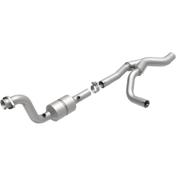 Keep the check engine light off with MagnaFlow OEM Grade Federal/EPA Compliant Direct-Fit Catalytic Converter 49499. With features including free-flowing mandrel-bent tubing and highly corrosion resistant stainless steel construction, easily install this spun body converter yourself using the proper tools, no cutting or welding required. MagnaFlow's state-of-the-art metrology department uses the latest 3D scanning systems during research and development, so you can be confident that your new part will fit and function like the original equipment. By replicating the OE spun body design, the single laser fusion weld greatly reduces the possibility of a leak, and our compact, low-mass design also allows for greater thermal efficiency.This direct-fit catalytic converter is designed specifically for the 2004-2006 Dodge Durango and interchanges with OE parts 5285 5422AB and 5285 5188AA. Hardware is included to eliminate the hassle of working with corroded factory parts. This replacement part is designed to meet or exceed Federal emissions requirements set forth by the EPA, complying with legal standards for OBDII Federally registered vehicles with California or Federal/EPA Emission systems.