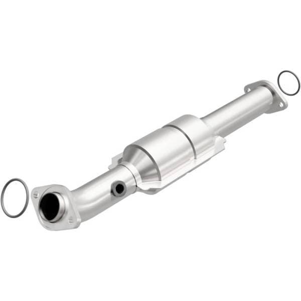Keep the check engine light off with MagnaFlow OEM Grade Federal/EPA Compliant Direct-Fit Catalytic Converter 49702. With features including free-flowing mandrel-bent tubing and highly corrosion resistant stainless steel construction, easily install this spun body converter yourself using the proper tools, no cutting or welding required. MagnaFlow's state-of-the-art metrology department uses the latest 3D scanning systems during research and development, so you can be confident that your new part will fit and function like the original equipment. By replicating the OE spun body design, the single laser fusion weld greatly reduces the possibility of a leak, and our compact, low-mass design also allows for greater thermal efficiency.This direct-fit catalytic converter is designed specifically for the 2005-2015 Toyota Tacoma and interchanges with OE parts 17410-0P020 and 17410-0P400, among others. Avoid potential exhaust leaks by using the included gaskets to get a proper seal. This replacement part is designed to meet or exceed Federal emissions requirements set forth by the EPA, complying with legal standards for OBDII Federally registered vehicles with California or Federal/EPA Emission systems.