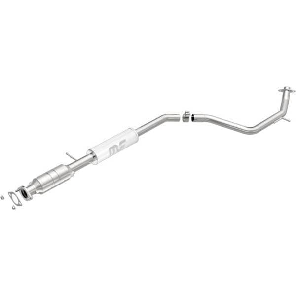 Keep the check engine light off with MagnaFlow OEM Grade Federal/EPA Compliant Direct-Fit Catalytic Converter 51886. With features including free-flowing mandrel-bent tubing and highly corrosion resistant stainless steel construction, easily install this spun body converter yourself using the proper tools, no cutting or welding required. MagnaFlow's state-of-the-art metrology department uses the latest 3D scanning systems during research and development, so you can be confident that your new part will fit and function like the original equipment. By replicating the OE spun body design, the single laser fusion weld greatly reduces the possibility of a leak, and our compact, low-mass design also allows for greater thermal efficiency.This direct-fit catalytic converter is designed specifically for the 2006-2010 Mazda 5 and interchanges with OE part LFZ3-20-55XC. Hardware is included to eliminate the hassle of working with corroded factory parts. This replacement part is designed to meet or exceed Federal emissions requirements set forth by the EPA, complying with legal standards for OBDII Federally registered vehicles with California or Federal/EPA Emission systems.