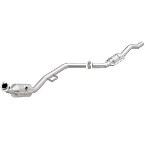 Keep the check engine light off with MagnaFlow OEM Grade Federal/EPA Compliant Direct-Fit Catalytic Converter 51666. With features including free-flowing mandrel-bent tubing and highly corrosion resistant stainless steel construction, easily install this spun body converter yourself using the proper tools, no cutting or welding required. MagnaFlow's state-of-the-art metrology department uses the latest 3D scanning systems during research and development, so you can be confident that your new part will fit and function like the original equipment. By replicating the OE spun body design, the single laser fusion weld greatly reduces the possibility of a leak, and our compact, low-mass design also allows for greater thermal efficiency.This direct-fit catalytic converter is designed specifically for the 2007-2009 Mercedes-Benz E350 and interchanges with OE parts 211 490 14 20 80 and 211 490 36 20 80. Hardware is included to eliminate the hassle of working with corroded factory parts. This replacement part is designed to meet or exceed Federal emissions requirements set forth by the EPA, complying with legal standards for OBDII Federally registered vehicles with California or Federal/EPA Emission systems.