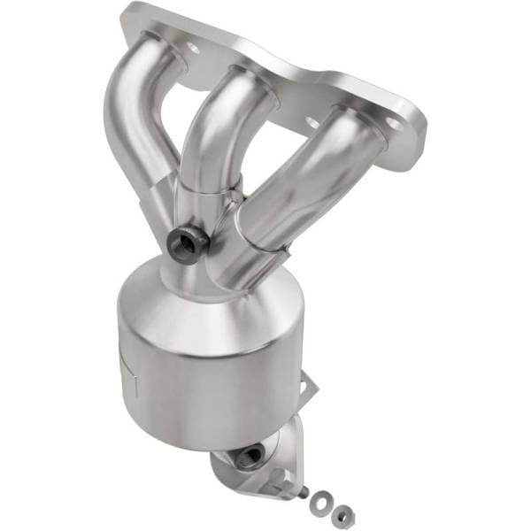 Keep the check engine light off with MagnaFlow OEM Grade Federal/EPA Compliant Direct-Fit Catalytic Converter 51771. With features including free-flowing mandrel-bent tubing and highly corrosion resistant, stainless steel construction, easily install this spun body converter yourself using the proper tools, no cutting or welding required. MagnaFlow's state-of-the-art metrology department uses the latest 3D scanning systems during research and development, so you can be confident that your new part will fit and function like the original equipment. By replicating the OE spun body design, the single laser fusion weld greatly reduces the possibility of a leak, and our compact, low-mass design also allows for greater thermal efficiency.This direct-fit catalytic converter is designed specifically for the 2007-2008 Mitsubishi Outlander. The included gaskets & hardware reduce the possibility of a leaking seal while avoiding the need to reuse corroded factory parts for installation. This replacement part is designed to meet or exceed Federal emissions requirements set forth by the EPA, complying with legal standards for OBDII Federally registered vehicles with California or Federal/EPA Emission systems.