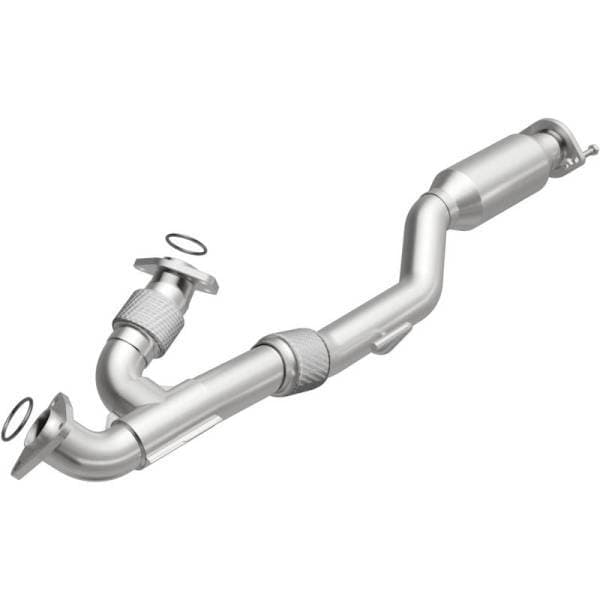 Keep the check engine light off with MagnaFlow OEM Grade Federal/EPA Compliant Direct-Fit Catalytic Converter 51852. With features including free-flowing mandrel-bent tubing and highly corrosion resistant stainless steel construction, easily install this spun body converter yourself using the proper tools, no cutting or welding required. MagnaFlow's state-of-the-art metrology department uses the latest 3D scanning systems during research and development, so you can be confident that your new part will fit and function like the original equipment. By replicating the OE spun body design, the single laser fusion weld greatly reduces the possibility of a leak, and our compact, low-mass design also allows for greater thermal efficiency.This direct-fit catalytic converter is designed specifically for the 2009-2015 Nissan Murano and interchanges with OE parts 20020-1AA2B and 20020-5AA2A, among others. The included gaskets & hardware reduce the possibility of a leaking seal while avoiding the need to reuse corroded factory parts for installation. This replacement part is designed to meet or exceed Federal emissions requirements set forth by the EPA, complying with legal standards for OBDII Federally registered vehicles with California or Federal/EPA Emission systems.