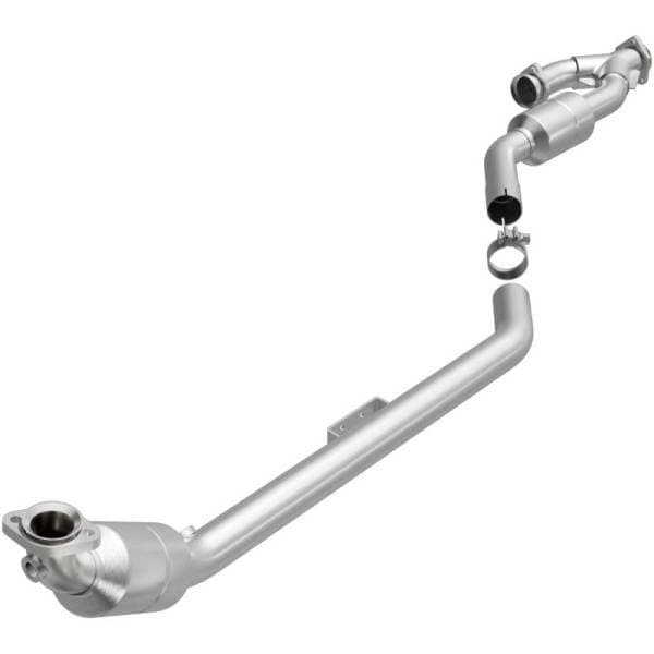 Keep the check engine light off with MagnaFlow HM Grade Federal/EPA Compliant Direct-Fit Catalytic Converter 24272. With features including free-flowing mandrel-bent tubing and highly corrosion resistant stainless steel construction, easily install this spun body converter yourself using the proper tools, no cutting or welding required. MagnaFlow's state-of-the-art metrology department uses the latest 3D scanning systems during research and development, so you can be confident that your new part will fit and function like the original equipment. By replicating the OE spun body design, the single laser fusion weld greatly reduces the possibility of a leak, and our compact, low-mass design also allows for greater thermal efficiency.This direct-fit catalytic converter is designed specifically for the 2003-2005 Mercedes-Benz CLK320 and interchanges with OE parts 203 490 25 20 80 and 209 490 01 20 80. Hardware is included to eliminate the hassle of working with corroded factory parts. This replacement part is designed to meet or exceed Federal emissions requirements set forth by the EPA, complying with legal standards for OBDII Federally registered vehicles with Federal/EPA Emission systems.
