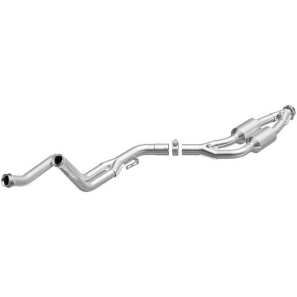 Keep the check engine light off with MagnaFlow HM Grade Federal/EPA Compliant Direct-Fit Catalytic Converter 23580. With features including free-flowing mandrel-bent tubing and highly corrosion resistant stainless steel construction, easily install this spun body converter yourself using the proper tools, no cutting or welding required. MagnaFlow's state-of-the-art metrology department uses the latest 3D scanning systems during research and development, so you can be confident that your new part will fit and function like the original equipment. By replicating the OE spun body design, the single laser fusion weld greatly reduces the possibility of a leak, and our compact, low-mass design also allows for greater thermal efficiency.Designed to fit the 1994-1997 Mercedes-Benz C280 and 1995-1996 Mercedes-Benz C36 AMG, this direct-fit catalytic converter also interchanges with OE part 202 490 99 19 80. Hardware is included to eliminate the hassle of working with corroded factory parts. This replacement part is designed to meet or exceed Federal emissions requirements set forth by the EPA, complying with legal standards for OBDII Federally registered vehicles with Federal/EPA Emission systems.