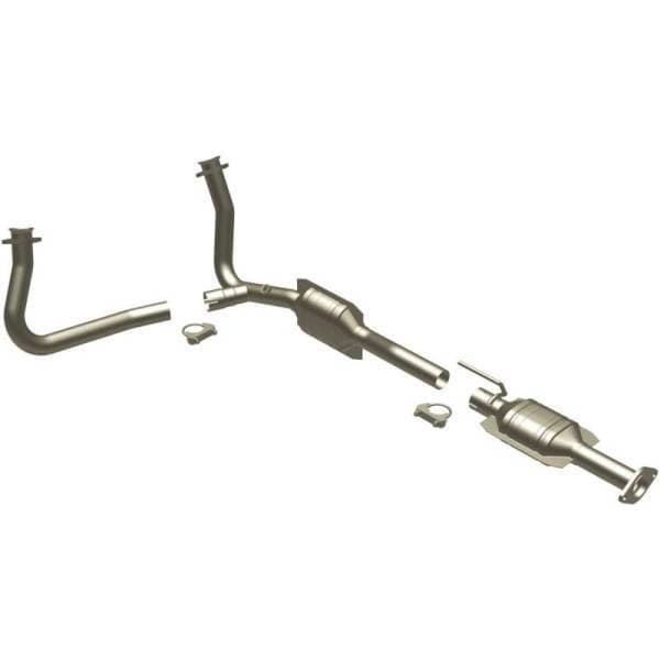 MagnaFlow HM Grade Federal/EPA Compliant Direct-Fit Catalytic Converter 93326 helps keep the check engine light off. DIY installation is easy with the proper tools (no cutting or welding required). With features including mandrel-bent tubing to eliminate flow restrictions and stainless steel construction to resist corrosion, you can have confidence in the quality of this catalytic converter. Using state-of-the-art 3D scanning systems in the design process, the MagnaFlow metrology department ensures this new part to fit and function like the original equipment.This direct-fit catalytic converter is designed specifically for the 1996-1997 Ford Aerostar and interchanges with OE part F69Z-5F250-APA. Hardware is included to eliminate the hassle of working with corroded factory parts. This replacement part is designed to meet or exceed Federal emissions requirements set forth by the EPA, complying with legal standards for OBDII Federally registered vehicles with Federal/EPA Emission systems.