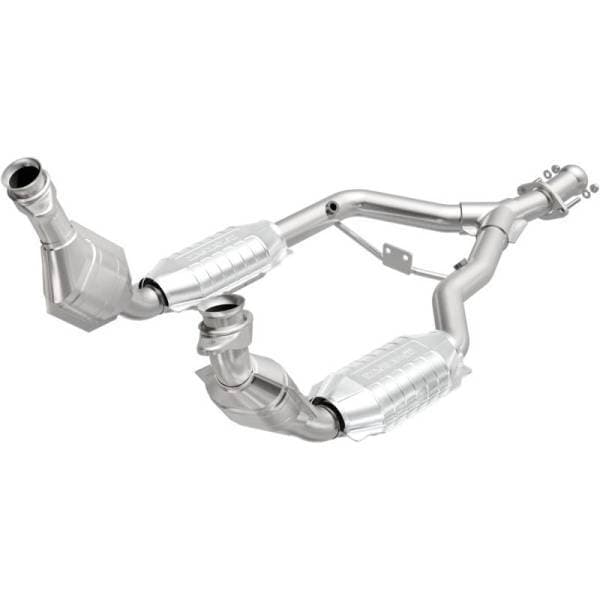 MagnaFlow HM Grade Federal/EPA Compliant Direct-Fit Catalytic Converter 93344 helps keep the check engine light off. DIY installation is easy with the proper tools (no cutting or welding required). With features including mandrel-bent tubing to eliminate flow restrictions and stainless steel construction to resist corrosion, you can have confidence in the quality of this catalytic converter. Using state-of-the-art 3D scanning systems in the design process, the MagnaFlow metrology department ensures this new part to fit and function like the original equipment.This direct-fit catalytic converter is designed specifically for the 1996-1998 Ford Mustang and interchanges with OE part F6ZZ-5F250-UA. Hardware is included to eliminate the hassle of working with corroded factory parts. This replacement part is designed to meet or exceed Federal emissions requirements set forth by the EPA, complying with legal standards for OBDII Federally registered vehicles with Federal/EPA Emission systems.