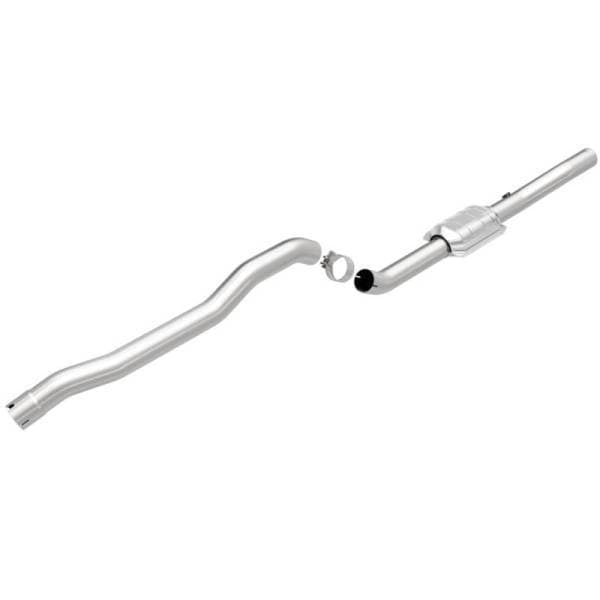 MagnaFlow HM Grade Federal/EPA Compliant Direct-Fit Catalytic Converter 23513 helps keep the check engine light off. DIY installation is easy with the proper tools (no cutting or welding required). With features including mandrel-bent tubing to eliminate flow restrictions and stainless steel construction to resist corrosion, you can have confidence in the quality of this catalytic converter. Using state-of-the-art 3D scanning systems in the design process, the MagnaFlow metrology department ensures this new part to fit and function like the original equipment.This direct-fit catalytic converter is designed specifically for the 1997-1999 Dodge Dakota and interchanges with OE parts 5019 321AB and 5019 322AB, among others. Hardware is included to eliminate the hassle of working with corroded factory parts. This replacement part is designed to meet or exceed Federal emissions requirements set forth by the EPA, complying with legal standards for OBDII Federally registered vehicles with Federal/EPA Emission systems.
