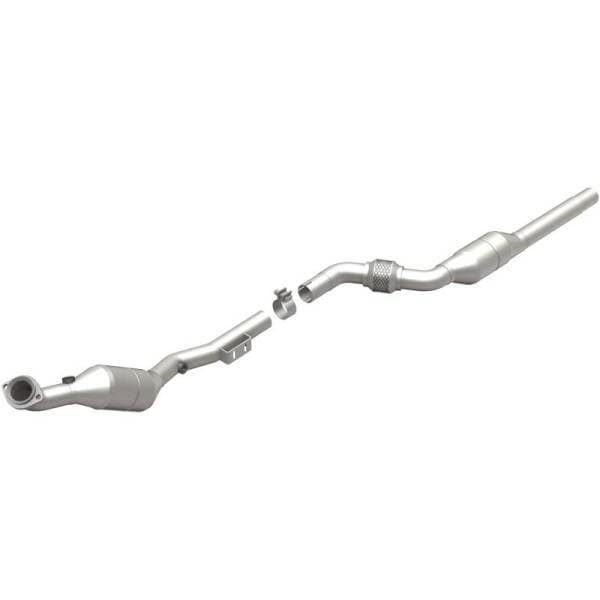 Keep the check engine light off with MagnaFlow HM Grade Federal/EPA Compliant Direct-Fit Catalytic Converter 93289. With features including free-flowing mandrel-bent tubing and highly corrosion resistant stainless steel construction, easily install this spun body converter yourself using the proper tools, no cutting or welding required. MagnaFlow's state-of-the-art metrology department uses the latest 3D scanning systems during research and development, so you can be confident that your new part will fit and function like the original equipment. By replicating the OE spun body design, the single laser fusion weld greatly reduces the possibility of a leak, and our compact, low-mass design also allows for greater thermal efficiency.This direct-fit catalytic converter is designed specifically for the 1998-2003 Mercedes-Benz E320 and interchanges with OE parts 210 490 36 47 and 210 490 34 47, among others. Hardware is included to eliminate the hassle of working with corroded factory parts. This replacement part is designed to meet or exceed Federal emissions requirements set forth by the EPA, complying with legal standards for OBDII Federally registered vehicles with Federal/EPA Emission systems.