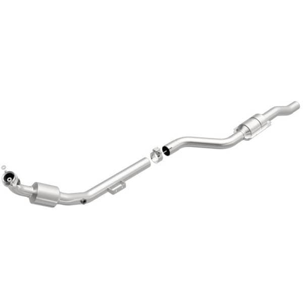 Keep the check engine light off with MagnaFlow HM Grade Federal/EPA Compliant Direct-Fit Catalytic Converter 24042. With features including free-flowing mandrel-bent tubing and highly corrosion resistant stainless steel construction, easily install this spun body converter yourself using the proper tools, no cutting or welding required. MagnaFlow's state-of-the-art metrology department uses the latest 3D scanning systems during research and development, so you can be confident that your new part will fit and function like the original equipment. By replicating the OE spun body design, the single laser fusion weld greatly reduces the possibility of a leak, and our compact, low-mass design also allows for greater thermal efficiency.Designed to fit the 2003-2005 Mercedes-Benz E320, 2003-2006 Mercedes-Benz E500, and more, this direct-fit catalytic converter also interchanges with OE parts 211 490 09 19 80 and 211 490 56 19 80. Hardware is included to eliminate the hassle of working with corroded factory parts. This replacement part is designed to meet or exceed Federal emissions requirements set forth by the EPA, complying with legal standards for OBDII Federally registered vehicles with Federal/EPA Emission systems.