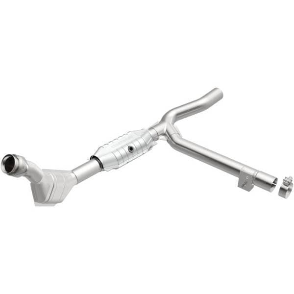 MagnaFlow HM Grade Federal/EPA Compliant Direct-Fit Catalytic Converter 93393 helps keep the check engine light off. DIY installation is easy with the proper tools (no cutting or welding required). With features including mandrel-bent tubing to eliminate flow restrictions and stainless steel construction to resist corrosion, you can have confidence in the quality of this catalytic converter. Using state-of-the-art 3D scanning systems in the design process, the MagnaFlow metrology department ensures this new part to fit and function like the original equipment.This direct-fit catalytic converter is designed specifically for the 1999-2000 Ford F-150. Hardware is included to eliminate the hassle of working with corroded factory parts. This replacement part is designed to meet or exceed Federal emissions requirements set forth by the EPA, complying with legal standards for OBDII Federally registered vehicles with Federal/EPA Emission systems.