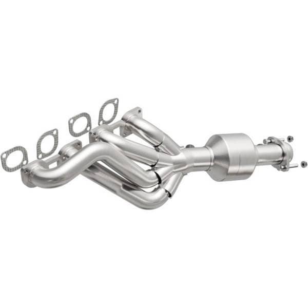 Keep the check engine light off with MagnaFlow OEM Grade Federal/EPA Compliant Direct-Fit Catalytic Converter 49789. With features including free-flowing mandrel-bent tubing and highly corrosion resistant, stainless steel construction, easily install this spun body converter yourself using the proper tools, no cutting or welding required. MagnaFlow's state-of-the-art metrology department uses the latest 3D scanning systems during research and development, so you can be confident that your new part will fit and function like the original equipment. By replicating the OE spun body design, the single laser fusion weld greatly reduces the possibility of a leak, and our compact, low-mass design also allows for greater thermal efficiency.Designed to fit the 2004-2005 BMW 645Ci, 2004-2005 BMW 545i, and more, this direct-fit catalytic converter also interchanges with OE part 18 40 7 522 555. The included gaskets & hardware reduce the possibility of a leaking seal while avoiding the need to reuse corroded factory parts for installation. This replacement part is designed to meet or exceed Federal emissions requirements set forth by the EPA, complying with legal standards for OBDII Federally registered vehicles with California or Federal/EPA Emission systems.