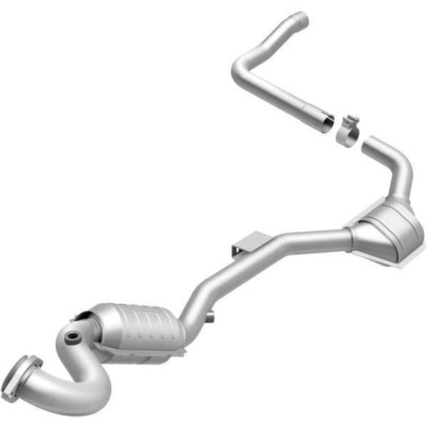 Keep the check engine light off with MagnaFlow OEM Grade Federal/EPA Compliant Direct-Fit Catalytic Converter 49867. With features including free-flowing mandrel-bent tubing and highly corrosion resistant stainless steel construction, easily install this spun body converter yourself using the proper tools, no cutting or welding required. MagnaFlow's state-of-the-art metrology department uses the latest 3D scanning systems during research and development, so you can be confident that your new part will fit and function like the original equipment. By replicating the OE spun body design, the single laser fusion weld greatly reduces the possibility of a leak, and our compact, low-mass design also allows for greater thermal efficiency.This direct-fit catalytic converter is designed specifically for the 1999-2001 Mercedes-Benz ML430 and interchanges with OE part 163 490 11 36 80. Hardware is included to eliminate the hassle of working with corroded factory parts. This replacement part is designed to meet or exceed Federal emissions requirements set forth by the EPA, complying with legal standards for OBDII Federally registered vehicles with California or Federal/EPA Emission systems.